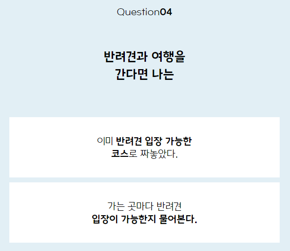 4. 반려견과 여행을 간다면 나는? 이미 반려견 입장가능한 코스로 짜놓았다 / 가는 곳마다 반려견 입장이 가능한지 물어본다