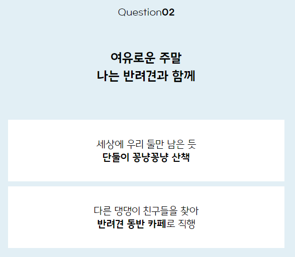 2. 여유로운 주말 나는 반려견과 함께? 세상에 우리둘만 남은듯 단둘이 산책 / 다른 친구들을 찾아 반려견 카페로