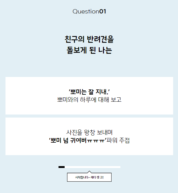 1. 친구의 반려견을 돌보게 된 나는? '뽀미는 잘 지내' 뽀미와의 하루에 대해 보고 / 사진을 왕창 보내며 '뽀미 넘 귀여버' 파워주접