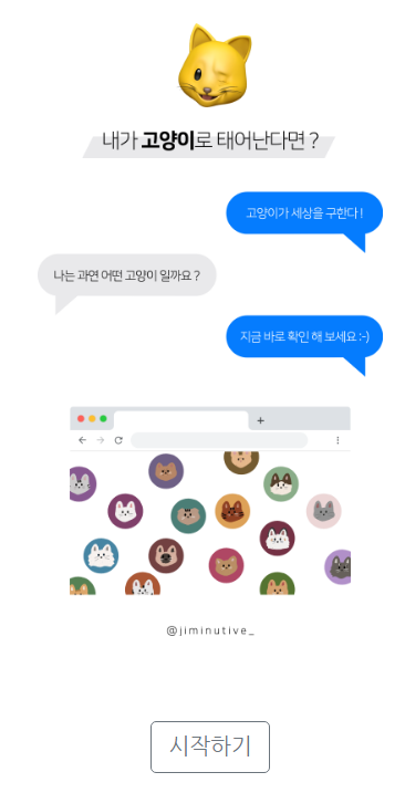 내가 고양이로 태어난다면, 나는 어떤 성격이 고양이일까? 한번쯤은 궁금해지곤 했었어요. 간단한 12문항의 테스트를 통해 나는 어떤 고양이 성격유형인지 알아보아요.
