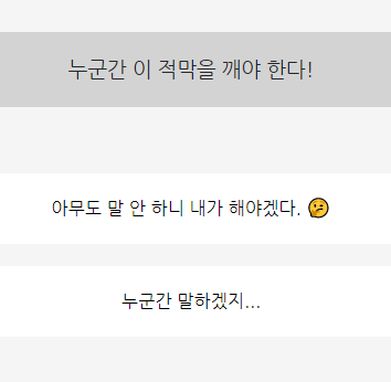 2. 누군가 이 적막을 깨야한다면? 아무도 말 안하니 내가 해야겠다 / 누군가 말하겠지