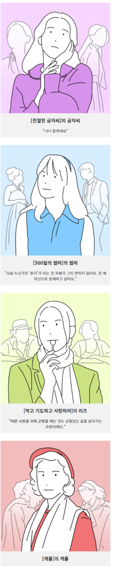 누군가의 뭔가가 되기보다는 자기자신이 되고 싶은 썸머의 명대사! 아쉽게도 이 영화는 본 적이 없지만, 대사가 제 마음에 팍 꽂힐 정도로 너무 좋은데요~ 내가 직접 말하는 것같은 기분이예요.