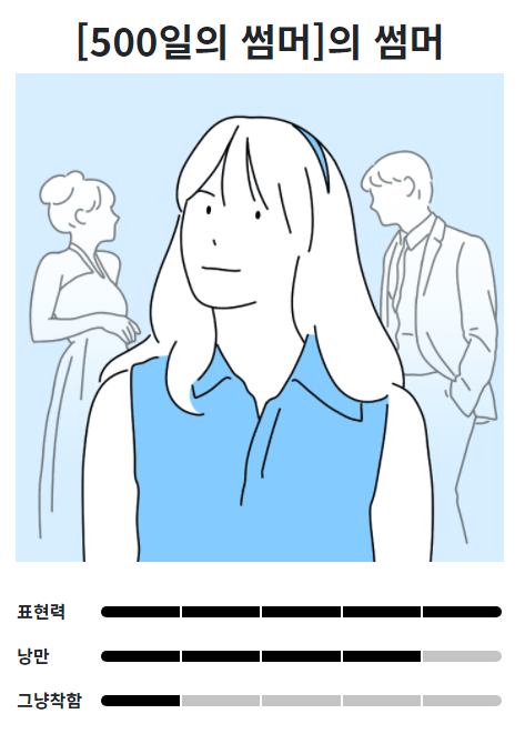 저는 500일의 썸머의 '썸머'가 나왔네요. 표현력가 낭만점수가 매우 좋네요.