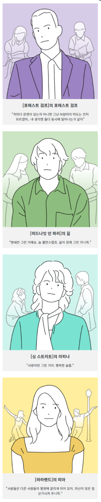 내 성격과 찰떡으로 맞는 영화의 캐릭터를 찾아주고, 그들의 명대사를 알아보는 MBTI 테스트입니다. 내 마음을 울린 영화 캐릭터의 명대사가 있으신가요? 마음에 염두해두고 출발해봅시다!