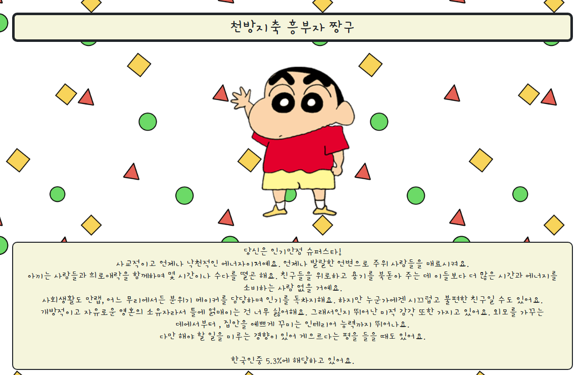 저는 천방지축 흥부자 짱구가 나왔어요!