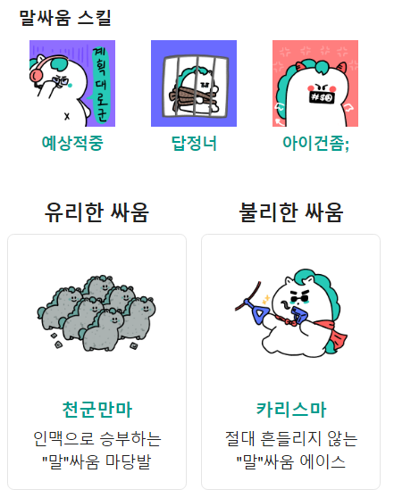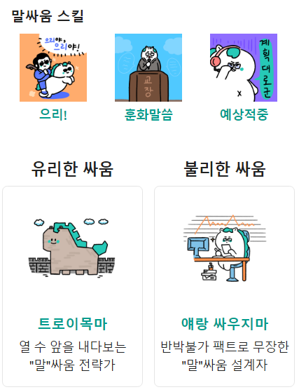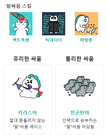 말싸움에 최적화된 스킬까지 장착했으니, 내가 카리스마 유형이 아니라면 절대 덤비지 마세요.