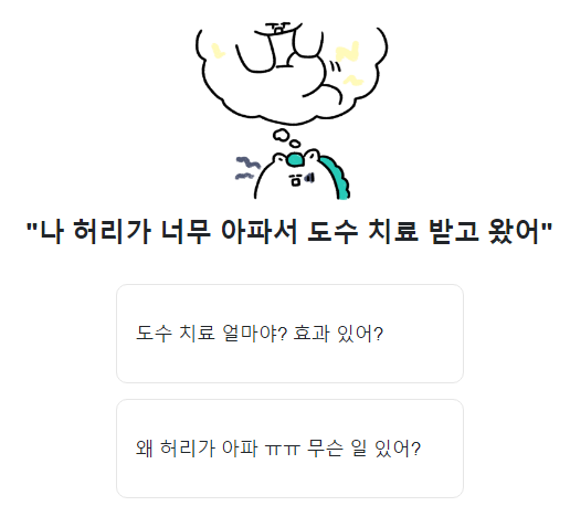 12. 친구가 허리아파서 도수치료받았다고 하면? 도수치료 얼마야? / 왜 허리가 아파?