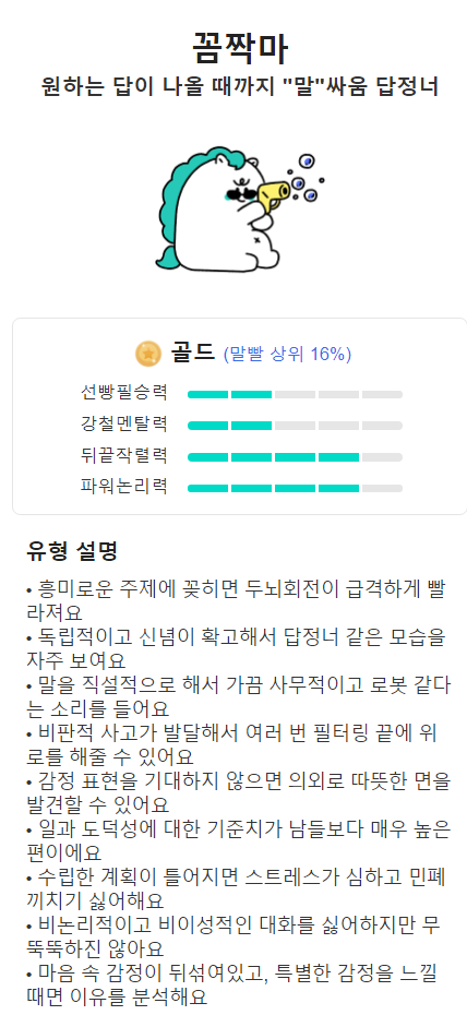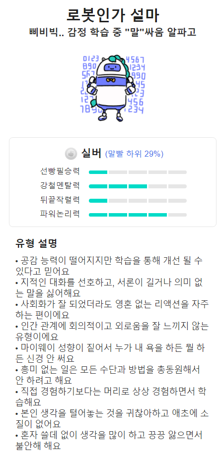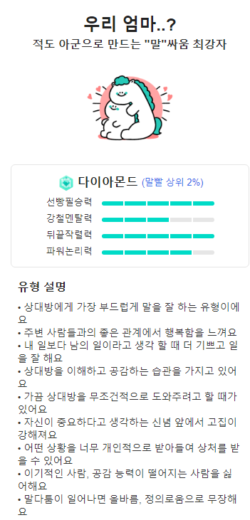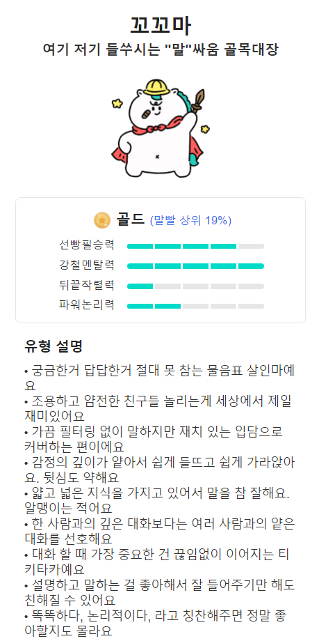 내 말빨 지수를 확인하고 싶으시다면 꼭 한번 해보세요.