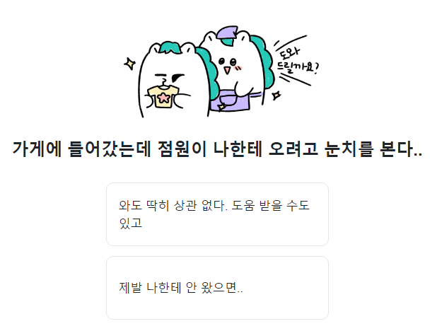 11. 가게에 들어갔는데 점원이 나에게 오려고 한다면? 상관없다 / 나한테 안왔으면...