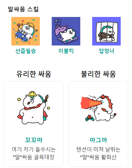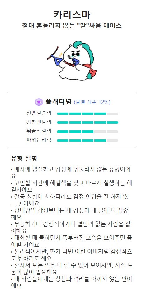 말싸움에 최적화된 스킬까지 장착했으니, 내가 카리스마 유형이 아니라면 절대 덤비지 마세요.