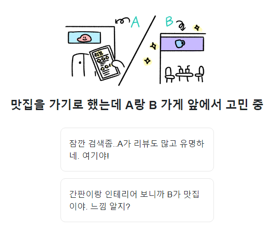 08. 맛집 앞에서 둘중 고민이라면? 검색 / 간판과 인테리어느낌