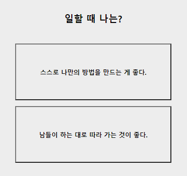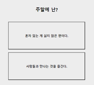 2. 주말에 난? 혼자있는게 좋다 / 사람들과 만나는게 좋다