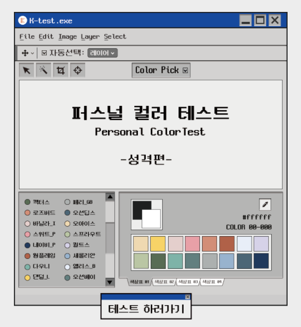 한때 엄청난 인기를 끌었던 퍼스널 컬러테스트입니다. 아직 해보지않으신 분들이라면 꼭 해보시길 추천드려요.