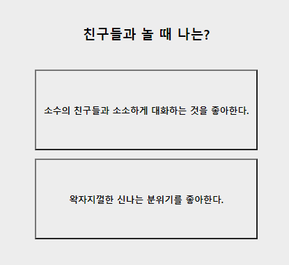 2. 주말에 난? 혼자있는게 좋다 / 사람들과 만나는게 좋다