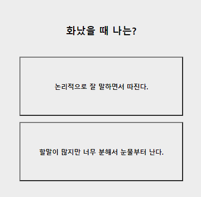 8. 화났을때 나는? 논리적으로 따진다 / 분해서 눈물부터 난다